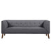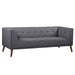 Hudson Mid-Century Button-Tufted Sofa in Dark Gray Linen and Walnut Legs