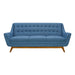 Janson Mid-Century Sofa in Champagne Wood Finish and Blue Fabric