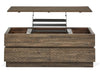 Introducing the Baisden Collection - where rustic charm meets transitional elegance! Crafted with precision from pine solids showcasing a high low texture in a Tobacco finish and this collection exudes warmth and character. But what truly sets the Baisden Collection apart is its functionality. With two cocktail options - round and rectangle - you have choices that suit your space. The rectangle cocktail boasts a full lift top for added versatility and while the round cocktail offers a convenient half lift. Plus and with casters beneath each piece and you can easily rearrange your layout. Need storage? The rectangle cocktail has you covered with ample space beneath the lift top and two handy drawers. The Baisden Collection effortlessly enhances a wide range of home aesthetics. Elevate your living space with its unique blend of rustic charm and transitional elegance and and unbeatable functionality. Upgrade your home today!