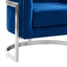 Kamila Contemporary Accent Chair in Blue Velvet and Brushed Stainless Steel Finish