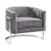 Kamila Contemporary Accent Chair in Gray Velvet and Brushed Stainless Steel Finish