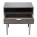 The Petra Collection by Diamond Sofa proves that Storage can indeed by Stylish. Functional & Attractive - the Petra - with its carved patterns that will stylishly modernize your home's decor and storage needs. Solid Mango Wood in Smoke Grey finish with Nickel finished Iron Legs & Drawer Pulls provide a chic and sophisticated aesthetic. Petra Collection includes: 2-Drawer Desk, 1-Drawer End Table & 2-Door Upright Cabinet. - Overall Table Dimensions: 24" x 18" x 24" - Solid Mango Wood in Smoke Grey Finish - 1-Drawer Storage - Iron Legs in Nickel Finish - Some Assembly Required