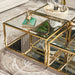 AICO Furniture Savannah Breeze 2pc Tall Cocktail Table in Bright Gold LFR-SBRZ201-806. The Savannah Breeze Tall Cocktail Table adds refined style and versatility to your living space. Designed as a sophisticated pair, the tables feature beveled glass tops offering a polished, elegant surface. A mirrored bottom shelf provides both functionality and a touch of glamour, perfect for displaying decor or keeping essentials close at hand. Framed in radiant gold, these tables can be used separately or combined with their smaller counterparts to create a tailored centerpiece for your room.