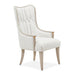 AICO Furniture St. Charles Arm Chair (Set of 2) in Dove Gray 9088004-803. Indulge in the opulent comfort of the Saint Charles Arm Chair, where every detail whispers luxury. Clad in sumptuous chenille fabric, this chair boasts a continuous Dove Gray finish that gracefully flows from the show wood on the chair back down to the arms and legs. The chair's sophisticated design, featuring traditional touches, adds an air of aristocracy to any setting.