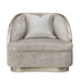 AICO Lanna Matching Chair in Storm Silver Mist NLRU-LANA835-STM-823. Curvy, elegant, and chic. The Lanna Matching Chair is made with sloping platinum rails and soft chenille fabric for the most comfortable support and sitting. Made for creating a dynamic room layout, this chair is backed with a honeycomb-patterned velvet so each angle is as stunning as the last. A new look into modern luxury, Lanna is defined by contoured frames, smooth platinum accents, and contrasting neutral patterns. Designed with the perfect mix of eclectic and complementary, this collection is the next level of chic brilliance.