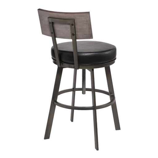The Legacy Adjustable Height Swivel Gray Faux Leather and Black Metal Bar Stool from Armen Living is the ideal addition to any home or apartment. T...