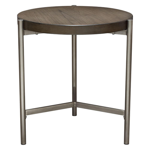 Bernhardt Interiors Casegoods Collection Randolph End Table Cast aluminum round top Slender pedestal and square base Adjustable glides Graphite Fi...