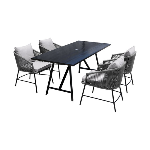 Original price - Original priceOriginal price$4,590.00$4,590.00 - $4,590.00Current price $4,590.00Alegria Outdoor Patio 5-Piece Dining Table Set in Aluminum with Gray Rope and Cushions