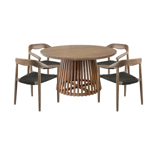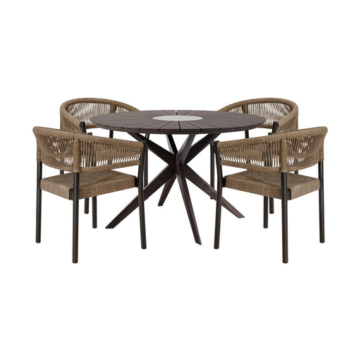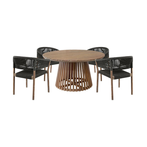 Original price - Original priceOriginal price$3,500.00$3,500.00 - $3,500.00Current price $3,500.00Oasis Santo Outdoor Patio 5 Piece Round Dining Set in Eucalyptus Wood and Charcoal Rope