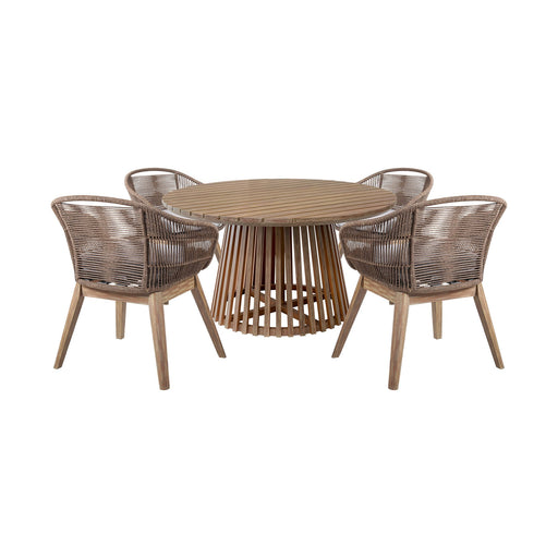 Original price - Original priceOriginal price$3,220.00$3,220.00 - $3,220.00Current price $3,220.00Oasis Doris Outdoor Patio 5 Piece Round Dining Set in Eucalyptus Wood with Truffle Rope