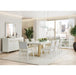 AICO Furniture Palm Gate Arm Chair (Set of 2) in Cloud White N9086004-108. The Palm Gate armchair brings understated elegance to your dining space. Its upholstered back and seat ensure comfort, while the tasteful Japan gold accents enhance its chic appeal.