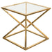 Aria Square Stainless Steel End Table w/ Polished Gold Finish Base & Clear, Tempered Glass Top by Diamond Sofa
