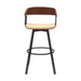 Athena 31" Swivel Walnut Wood Bar Stool in Cream Faux Leather with Black Metal