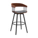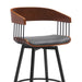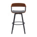 Athena 31" Swivel Walnut Wood Bar Stool in Gray Faux Leather with Black Metal
