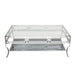 Avalon Cocktail Table with Clear Glass Top, Mirrored Shelf & Stainless Steel Frame by Diamond Sofa