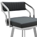 The Capri Swivel Modern Metal and Faux Leather Bar and Counter Height Stool is available in your choice of a Matte Black or Brushed Stainless Steel finish and beautiful slate Gray faux leather and comes in a Bar 30" height or a Counter 26" height.