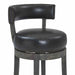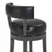 Ensure a comfortable, inviting, and stylish place to sit for your guests with the Corbin 26" Counter Height Swivel Onyx Faux Leather and American Gray Wood Bar Stool from Armen Living. Luxurious faux leather upholstery meets beautiful wooden legs in a marriage of classic and contemporary style. The back rest and seat feature a nail head trim that creates a sense of structure and dimensionality that pairs perfectly with the graceful curves and flared legs.
