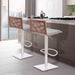 Add a modern touch to your home or apartment with the Crystal Adjustable Height Swivel Gray Fabric and Walnut Bar Stool with Brushed Stainless-Steel Base from Armen Living. The Crystal showcases a unique wood backing that features a geometric cut out design that will surely start conversation amongst your family and friends at your next party or gathering. The beautiful stainless-steel finish is impressively stain-resistant, resilient to marking and easy to clean.