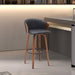 The Diana swivel bar or counter stool easily incorporates into any home and is available in your choice of 26-inch or 30-inch seat height in a walnut wood finish with gray, cream, and black faux leather upholstery, and black wood finish with gray faux leather and light gray fabric upholstery.