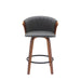 The Diana swivel bar or counter stool easily incorporates into any home and is available in your choice of 26-inch or 30-inch seat height in a walnut wood finish with gray, cream, and black faux leather upholstery, and black wood finish with gray faux leather and light gray fabric upholstery.