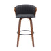 Diana 30" Swivel Walnut Wood Bar Stool in Black Faux Leather