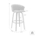 The Diana swivel bar or counter stool easily incorporates into any home and is available in your choice of 26-inch or 30-inch seat height in a walnut wood finish with gray, cream, and black faux leather upholstery, and black wood finish with gray faux leather and light gray fabric upholstery.