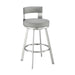 Flynn 30" Swivel Bar Stool in Brushed Stainless Steel with Light Gray Faux Leather