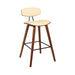 Fox 28.5" Bar Height Cream Faux Leather and Walnut Wood Mid-Century Modern Bar Stool