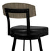 • Frisco Mid-Century Barstool in Matte Black Finish and Vintage Black Faux Leather with Gray Walnut Wood
