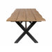 Complementing the chairs, the Glendora Outdoor Patio Live Edge Dining Table offers a stunning blend of natural beauty and contemporary design. The Eucalyptus wood tabletop features a wavy live edge, expertly sanded down for a unique and eye-catching surface. Supported by an industrial black metal base, this table combines aesthetics with durability.