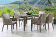 The UV and water-resistant cushions are ideal for any outdoor space and conveniently feature a zipper closure, making maintenance and upkeep a breeze. The wonderfully crafted Grenada dining table features and sturdy aluminum top. The Grenada rectangle outdoor table features a convenient umbrella hole to keep you out of the sun. This beautiful Grenada dining set is durable and robust - capable of withstanding inclement weather and everyday wear and tear.