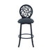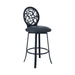The Armen Living Lotus contemporary armless barstool features a unique aesthetic that is certain to work well in any contemporary household. A beautiful geometric back provides excellent lumbar support while serving as a stylish contemporary accent. The Lotus' durable matte black finish frame is accompanied beautifully by its Gray faux leather seat. 360 degree swivel action and added footrest provide both a wide range of motion and stability while seated.