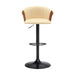 Lydia Adjustable Walnut Wood Bar Stool in Cream Faux Leather with Black Metal