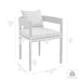 The dining set remains a welcoming addition to a patio, backyard, pool area, garden, or screened in porch. It is made with lightweight, sleek, and sturdy powder-coated aluminum making it easy to move to your desired location. The outdoor chairs with cushions embrace a barrel silhouette to wrap you in comfort. The dark gray high density foam cushions are removable and feature a zipper closure, making clean up a breeze!