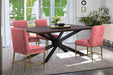 Pirate and Memphis 5 Piece Modern Dining Set in Brown Acacia Wood and Pink Velvet Fabric