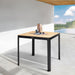 Portals Outdoor Square Bar Table in Natural Teak Wood Top and Black Frame