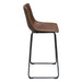 The Theo Bar Chair Collection by Diamond Sofa is contemporarily classic and undeniably chic. It features an iconic scoop seat silhouette accented by criss-cross stitching for an added element of Vintage Americana. Upholstered in a Chocolate leatherette and placed onto an iron frame with a black powder coated finish, creating a ruggedly modern look that will hold up to everyday wear. Bar Chairs are packaged and sold as sets of 2/Box.