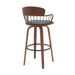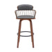 Willow 25.5" Swivel Walnut Wood Counter Stool in Gray Faux Leather with Golden Bronze Metal