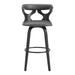The Zenia 26" Counter Height Bar Stool in Gray Faux Leather and Black Wood is suited for any modern or contemporary home aesthetic and will introduce you to the wonders of Armen Living. The smooth geometric chair back is unique and clean, giving this piece an extra ounce of style. The Zenia features a 360-degree swivel function that allows you to keep the conversation going in every direction.