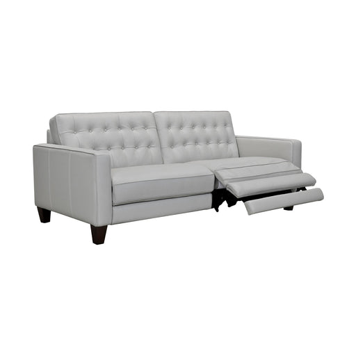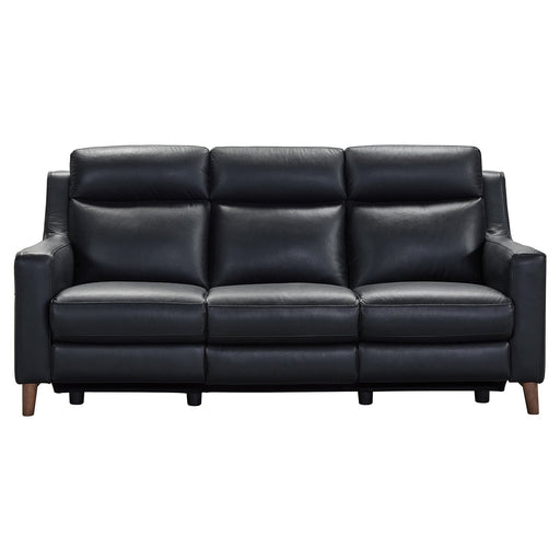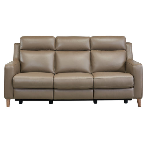 The Armen Living Wisteria Contemporary Top Grain Leather Power Recliner Sofa with USB features a sleek tall back design for enhanced lumbar support...