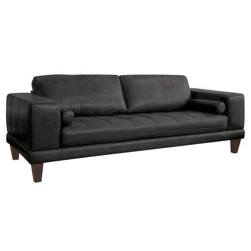 Original price - Original priceOriginal price$3,030.00$3,030.00 - $3,030.00Current price $3,030.00Wynne Contemporary Sofa in Genuine Black Leather with Brown Wood Legs