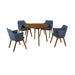 Arcadia and Renzo 42" Round Blue and Walnut Wood 5 Piece Dining Set
