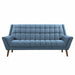 Cobra Mid-Century Modern Sofa in Blue Linen and Walnut Legs