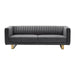 The Armen Living Delilah Dark Gray Velvet Sofa with Matte Gold Legs offers your home a centerpiece of exceptional design. Our three-seater sofa brings your living room a stunning look with its deep channel stitching, velvet upholstery, and squared arms. Finished with a low-profile design, this sofa stands as a streamlined statement piece that can change the whole flow of your interior decor, creating an open, clean space.