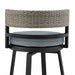 The metal and wicker patio furniture piece showcases a round and streamlined silhouette with slanted legs, the stools serve as an elegant and charming addition to this outdoor patio furniture set. It provides a great spot to enjoy meals and cocktails hours outside with friends and family. The outdoor bar stools with backs include a 360-degree swivel function to add to the entertainment factor and maximize mobility, enhancing the appeal of this outdoor furniture.