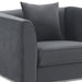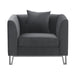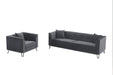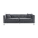 The striking brushed stainless steel legs are a stand-out feature that compliments the fabric upholstery perfectly, while also adding to the uniqueness of this chair and sofa set. This wonderful chair and sofa set comes with 3 additional toss pillows to accessorize with. The Everest set is available in your color choice of blue, Gray, and blush fabric.