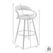Revitalize any space with the sleek and inviting charm of the Gardenia Swivel Counter and Bar Height Stool in Faux Leather and Metal by Armen Living. The refined profile and sleek curves of our barstool offer instant appeal and comfort. With a floating back and curved arms, our barstool is ready to make a chic statement. Its hugging back and round seat are covered in easy-to-maintain faux leather to offer lasting style and comfort. The slim arms flow seamlessly into the small but comfy backrest.