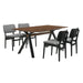 The Armen Living Laredo and Lima mid-century dining set promises an unmatched degree of comfort and dependability, making it an ideal choice for the contemporary dining room. The Laredo's modern design boasts a black frame, brilliantly complemented by the table's stylish Walnut Veneer top design. This combination finds its ideal match in the Lima's sleek black frame. Foam padded and exceptionally comfortable, the Lima offers a supportive frame wrapped in a sophisticated Gray fabric package.