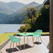 The Nassau Outdoor 3 Piece Mint Eucalyptus Dining Set is a wonderfully colorful addition to bring to your outdoor patio area. The ergonomic chair backs of the Nassau chairs help your back maintain the best position possible - keeping you and your back healthy and strong. The chairs are made from 100% virgin polypropylene and contains no harmful chemicals and can be recycled without producing waste or damaging the environment.
