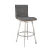 Nikole 26" Counter Height Walnut Swivel Bar Stool in Brushed Stainless Steel Finish and Gray Faux Leather